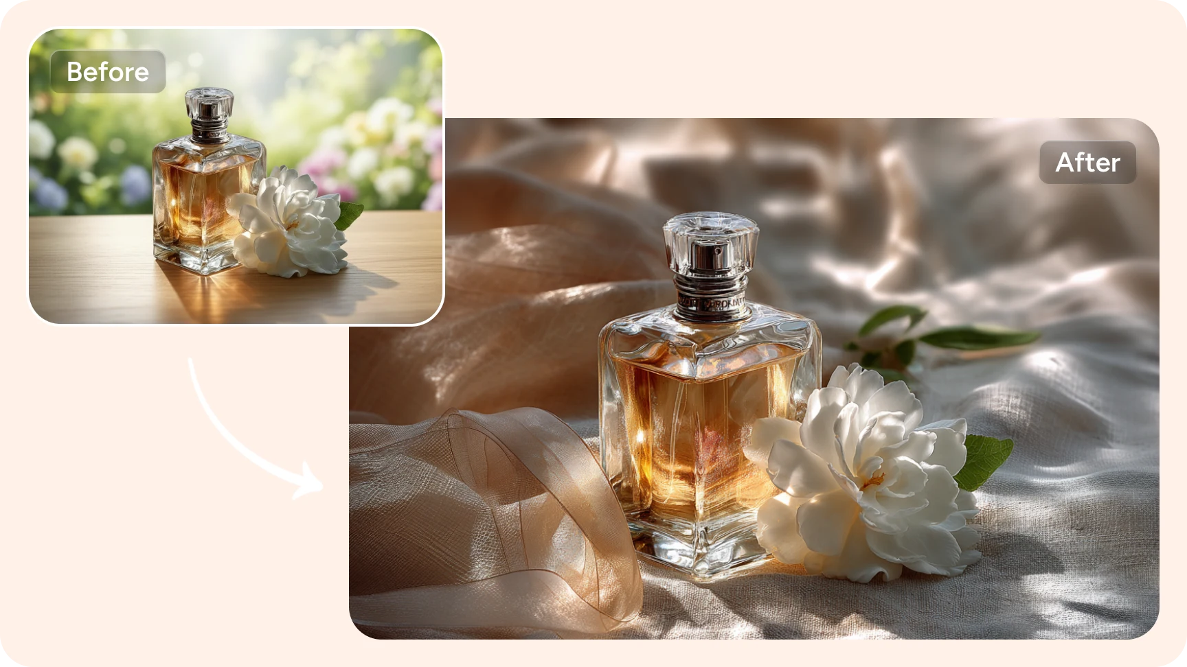 Create stunning product scenes without physical props or studio space. With AI Ease image editing tool, generate new backgrounds that match your brand style, seasonal campaigns, or marketplace requirements. Instantly place your product in a luxury studio, lifestyle setting, or clean minimalist backdrop.