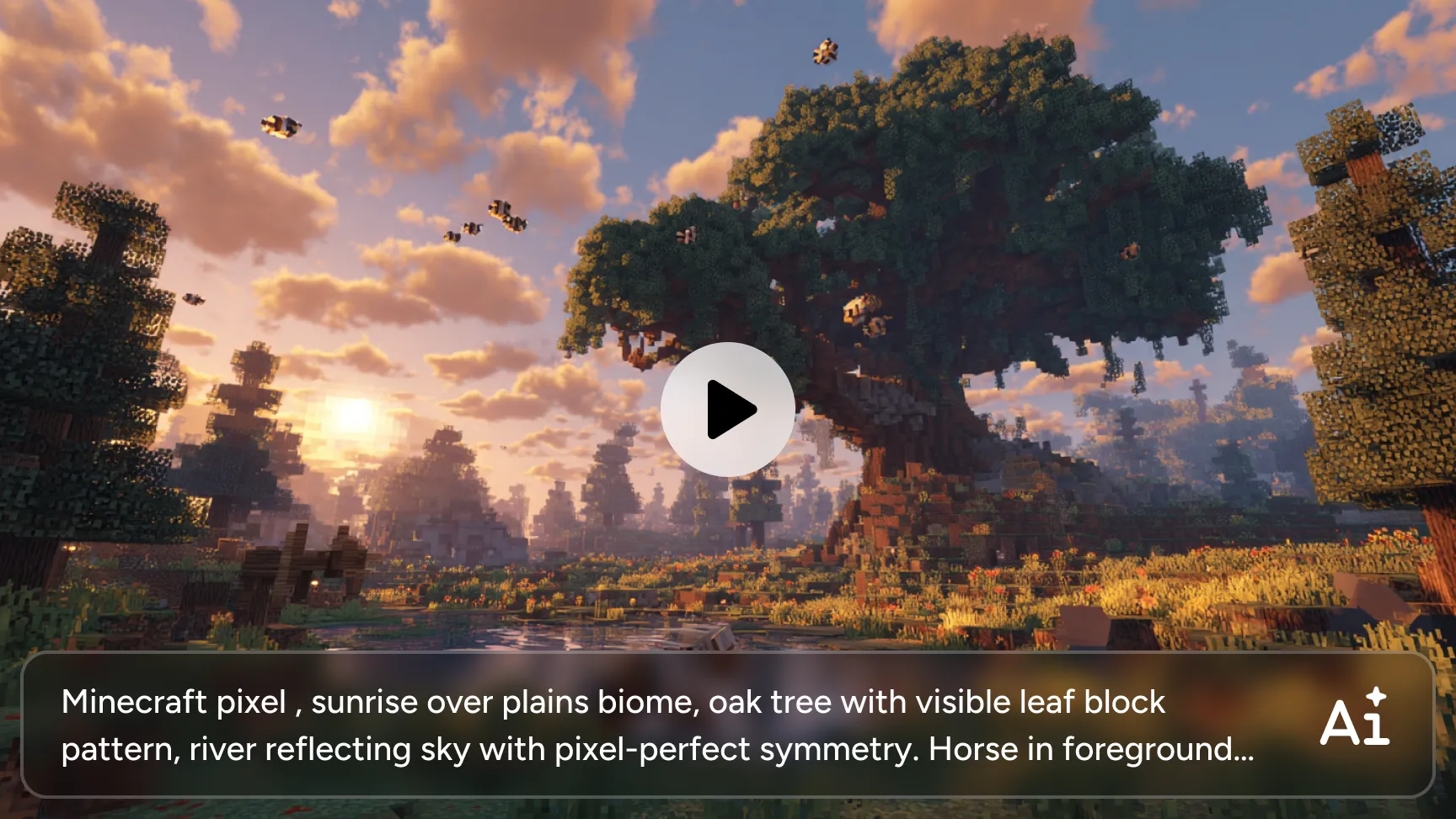 Create engaging pixel-style videos designed specifically for Minecraft fans. Whether it’s parkour scenes, character animations, or creative worlds, the AI transforms prompts or images into videos that match the iconic Minecraft aesthetic. This makes it easy to turn fan ideas, stories, or favorite elements into visually appealing content.