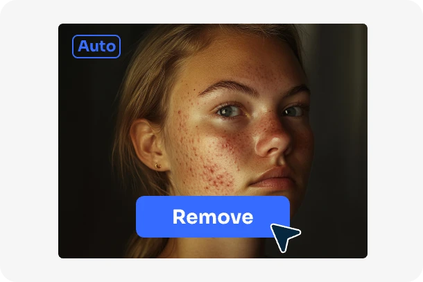 Remova queimaduras solares, cicatrizes, espinhas e sardas do seu rosto gratuitamente com um clique. Recupere a sua beleza original e melhore a atração dos seus retratos com o poderoso removedor de manchas. Experimente agora!