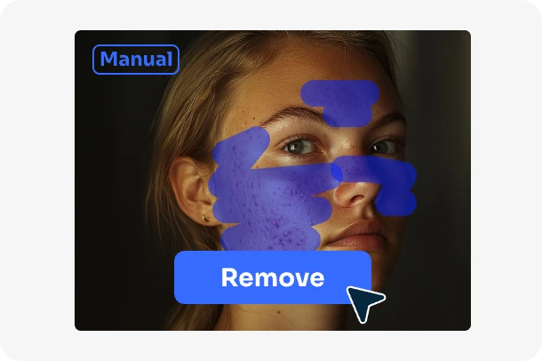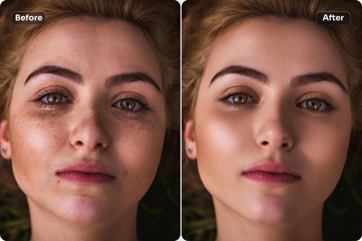 Muitas vezes, o AI Ease pode ajudá-lo automaticamente a eliminar manchas e sardas. No entanto, só por vezes pode apanhar os detalhes mais finos. Nesses casos, pode utilizar a ferramenta de pincel para selecionar e refinar manualmente as áreas para uma remoção mais precisa das manchas.