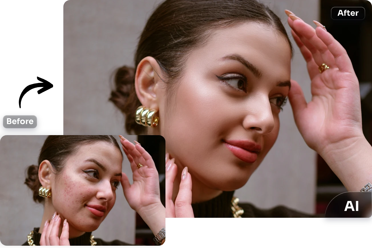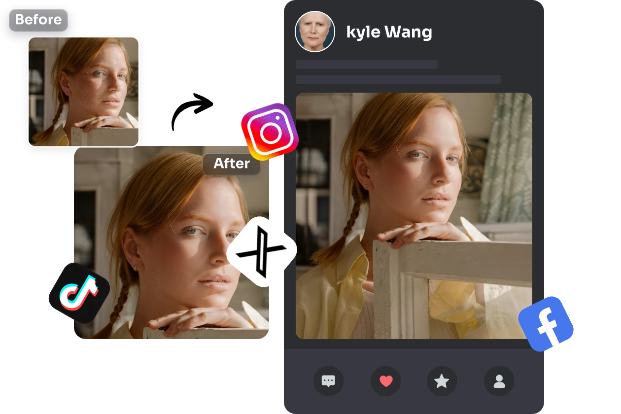 A lente de alta definição da câmara revela o verdadeiro estado da sua pele, realçando quaisquer imperfeições. Se preferir não mostrar estes detalhes nas suas fotografias, considere utilizar o nosso removedor de imperfeições do rosto para suavizar as distracções. Desta forma, pode partilhar com confiança o seu retrato impecável nas redes sociais ou utilizá-lo como avatar em plataformas como o WhatsApp, Snapchat e Discord. Pode continuar a apresentar fotografias autênticas, mantendo a sua pele com o melhor aspeto possível.